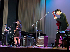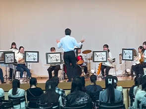 毎週月曜日と木曜日に講堂で練習を行っています。文化祭のステージ演奏を目標に活動を行っています。